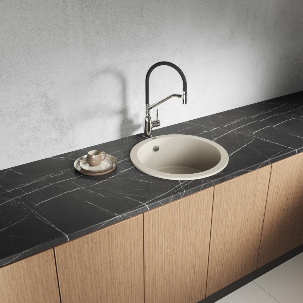 Dafne je široký rad drezov Laveo vyrábaných v Poľsku. Rad zahŕňa modely bez odtoku, s otvorom pre batériu, bez otvoru pre batériu, s odtokom alebo poloodtokom a model s dvojitým drezom bez odtoku. Všetky modely sú vybavené pripojením na umývačku riadu a vypúšťacou zátkou click-clack s 3,5-palcovým sitkom, ktoré zabraňuje vniknutiu zvyškov riadu do systému. Priestorovo úsporný sifón šetrí miesto v skrinke pod drezom a vytvára priestor pre odpadkové koše alebo organizér na čistiace prostriedky. Dafne je voľbou pre milovníkov klasického interiérového designu. Jemne zaoblené hrany drezu, prírodné zemité farby: biela, čierna, béžová a šedá a teplá žula na dotyk dodávajú drezu vizuálne „teplý“ efekt. Výrobok vyrobený zo žuly je odolný voči tepelným šokom, vysokým teplotám, nárazom a nečistotám. Výrobca poskytuje 10-ročnú záruku a servis na mieste.