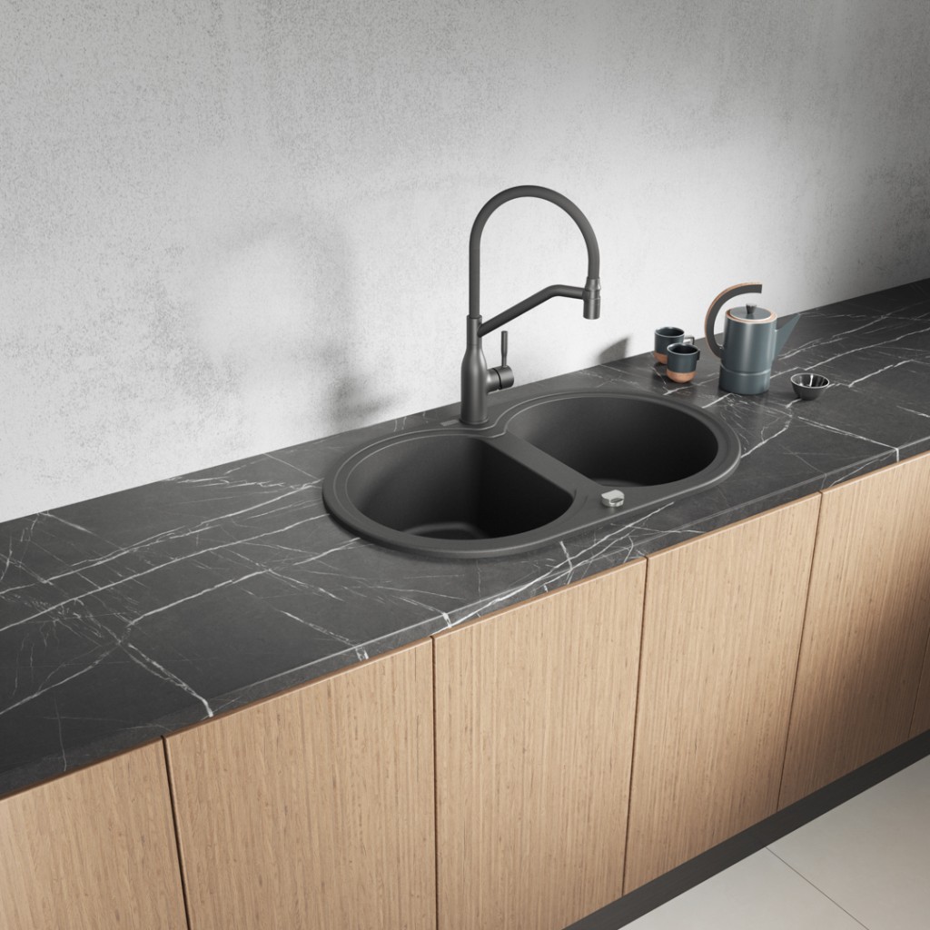 Dafne je široký rad drezov Laveo vyrábaných v Poľsku. Rad zahŕňa modely bez odtoku, s otvorom pre batériu, bez otvoru pre batériu, s odtokom alebo poloodtokom a model s dvojitým drezom bez odtoku. Všetky modely sú vybavené pripojením na umývačku riadu a vypúšťacou zátkou click-clack s 3,5-palcovým sitkom, ktoré zabraňuje vniknutiu zvyškov riadu do systému. Priestorovo úsporný sifón šetrí miesto v skrinke pod drezom a vytvára priestor pre odpadkové koše alebo organizér na čistiace prostriedky. Dafne je voľbou pre milovníkov klasického interiérového designu. Jemne zaoblené hrany drezu, prírodné zemité farby: biela, čierna, béžová a šedá a teplá žula na dotyk dodávajú drezu vizuálne „teplý“ efekt. Výrobok vyrobený zo žuly je odolný voči tepelným šokom, vysokým teplotám, nárazom a nečistotám. Výrobca poskytuje 10-ročnú záruku a servis na mieste.