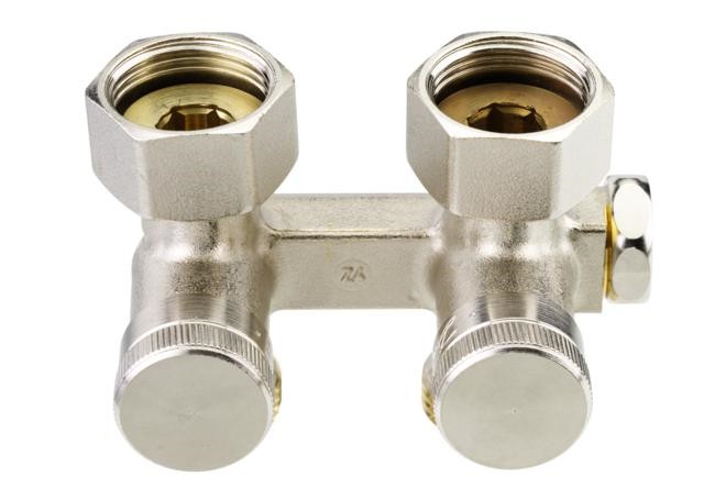 Radiátorové šroubení tvaru H typ RLV-K je vhodné pro každý radiátor se spodním přívodem se vzdáleností přívodu a vývodu 50 mm. Šroubení umožňuje uzavřít okruh a vypustit topné těleso při jeho demontáži. Jako příslušenství se dodává kohout pro vypouštění a napouštění radiátoru.