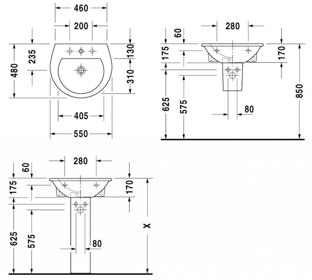 - inštalácie: zavesením na stenu, so stĺpom alebo polostĺpom pre umývadlo