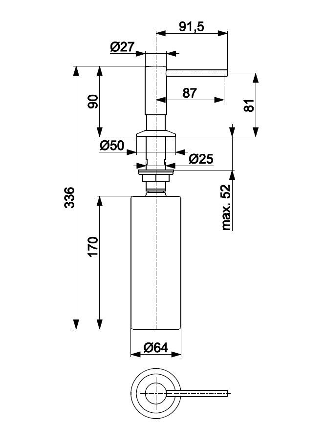 Dávkovač umývacích prostriedkov na riad je vyrobený z materiálu nerez a ABS plastu. Kapacita nádobky je 320 ml.