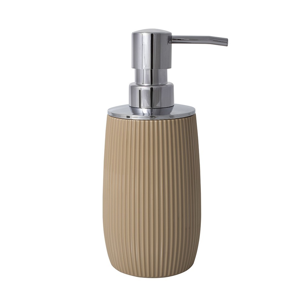 Dávkovač mydla zo série Solei v odtieni cappuccino To je kvintesencia čistej formy a minimalizmu Textúra produktu je veľmi praktická pri použití a zabraňuje vykĺznutiu z rúk.