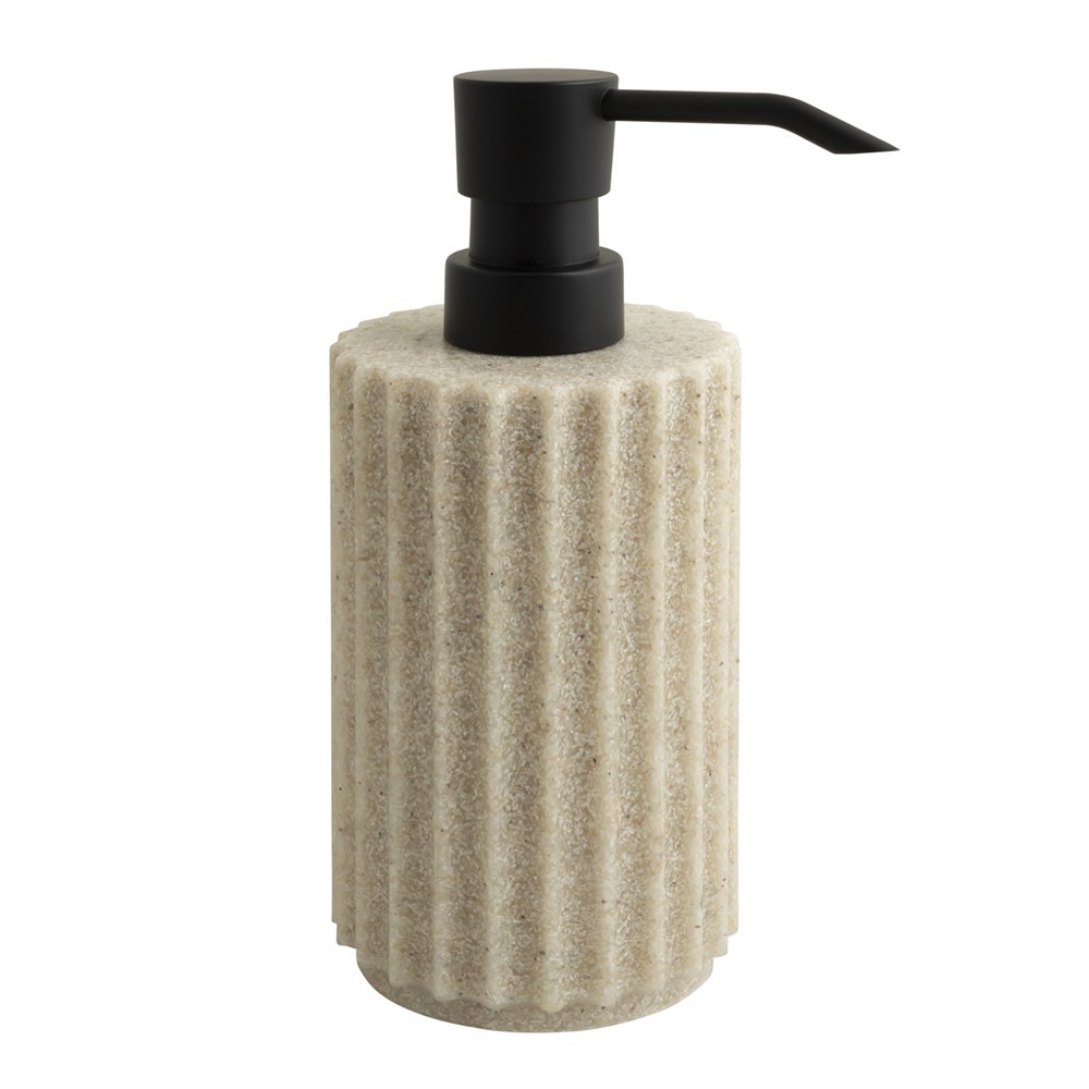Dávkovač mydla s objemom 300 ml z radu SORRA. Je vyrobená z kvalitného plastu - polyresinu, ktorý si po dlhú dobu zachováva perfektný vzhľad. Je vybavená funkčnou pumpičkou moderného tvaru v matnej čiernej farbe, ktorá dávkuje zodpovedajúce množstvo tekutiny.