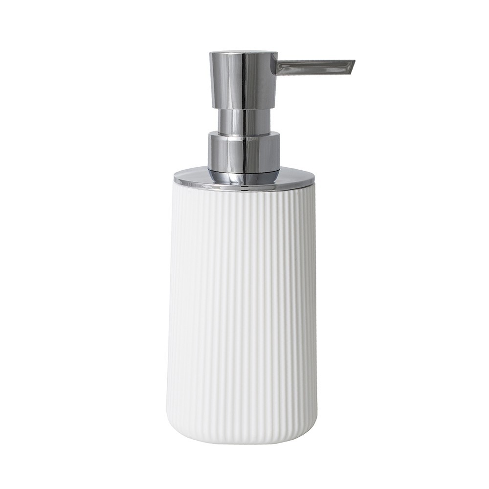 Dávkovač mydla zo série Zen v bielej farbe. To je kvintesencia čistej formy a minimalizmu. Textúra produktu je veľmi praktická pri použití a zabraňuje vykĺznutiu z rúk. Kapacita dávkovača je 250 ml.