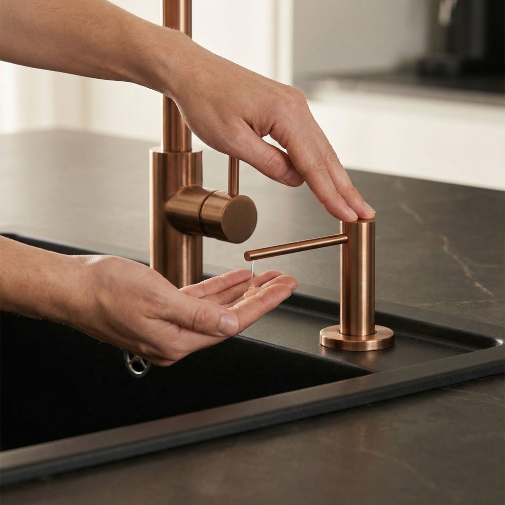 Objavte spôsob, ako dosiahnuť dokonalý poriadok a moderný vzhľad umývacej zóny s kuchynským dávkovačom Rea Dex. Tento štýlový prvok vybavenia spája výnimočný dizajn s každodenným pohodlím, ktoré premení každú kuchyňu. Vďaka svojej premyslenej forme dávkovač nielen uľahčuje dávkovanie prostriedku na riad alebo mydlá, ale stáva sa tiež efektným dekoratívnym akcentom. Objem 300 ml umožňuje menej časté doplňovanie obsahu, čo výrazne zvyšuje komfort pri každodenných kuchynských prácach Montáž do drezu alebo pracovnej dosky zaisťuje nutnosť mať nevzhľadný lah že produkt dokonale zapadá do moderných interiérových trendov a dodáva priestoru jedinečný charakter. Zladená farebnosť starostlivo zvolená povrchová úprava umožňuje ľahko prispôsobiť produkt farbe vášho drezu aj ostatným prvkom kuchynského vybavenia. Kuchynský dávkovač Rea Dex je voľbou pre tých, ktorí si cenia minimalizmu a praktických riešení vo svojom domove. Perfektné spracovanie a ergonomická konštrukcia zaisťujú, že každodenné povinnosti sú oveľa pohodlnejšie a hygienickejšie. Výberom tohto produktu získavate istotu najvyššej kvality a estetiky, ktorá dokonale doplní umývaciu zónu a vytvorí s ňou súdržný a elegantný celok.