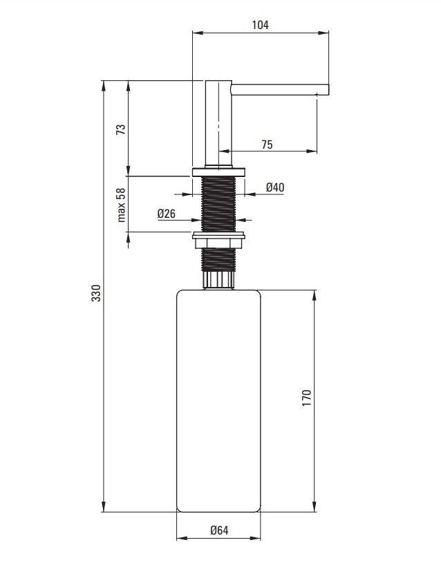 Dávkovač na umývacie prostriedky je špeciálny typ dávkovača, ktorý je umiestnený v kuchynskej doske alebo pracovnej ploche. Vzhľadom na to, že dávkovač je umiestnený v doske, nie je viditeľný zvonku a nepôsobí rušivo na dizajn kuchyne. Tým sa dosahuje elegantný a minimalistický vzhľad, ktorý je stále plne funkčný. Nádoba je vyrobená z plastu a má kapacitu 500 ml, zatiaľ čo hubica je kovová a je dlhá 75 mm.