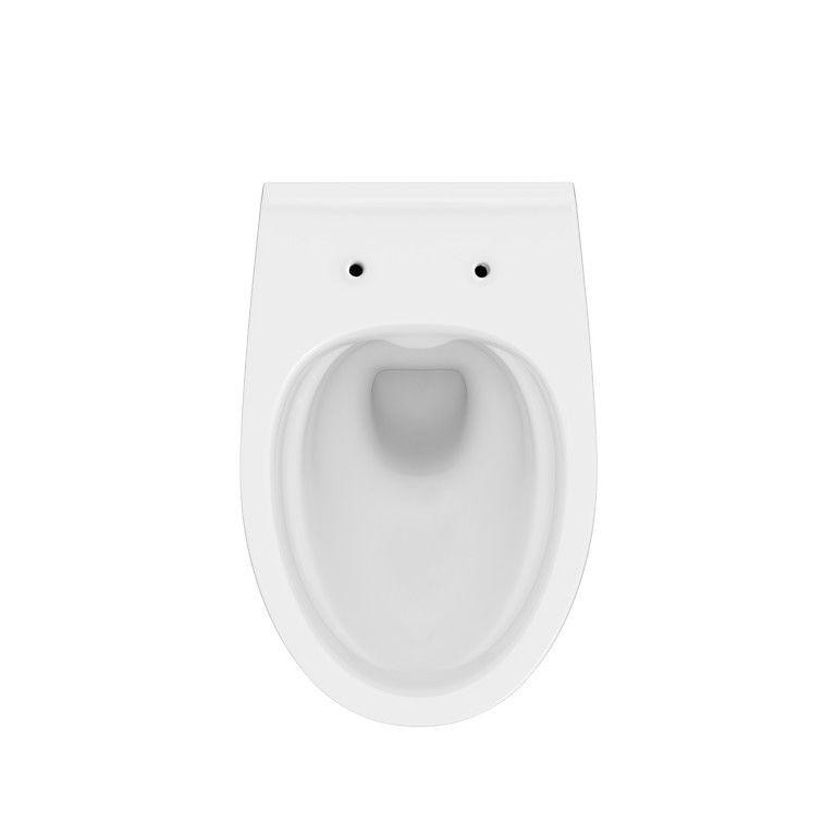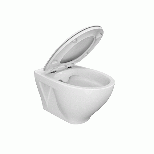 Oválna závesná WC misa MODUO s technológiou CleanOn /bez oplachového kruhu/, kde sa nezhromažďujú nečistoty ako v štandardných WC misách s klasickým uzavretým kruhom a ich údržba je jednoduchšia a hygienickejšia. WC misa má úsporný oplach vody 3/5l.