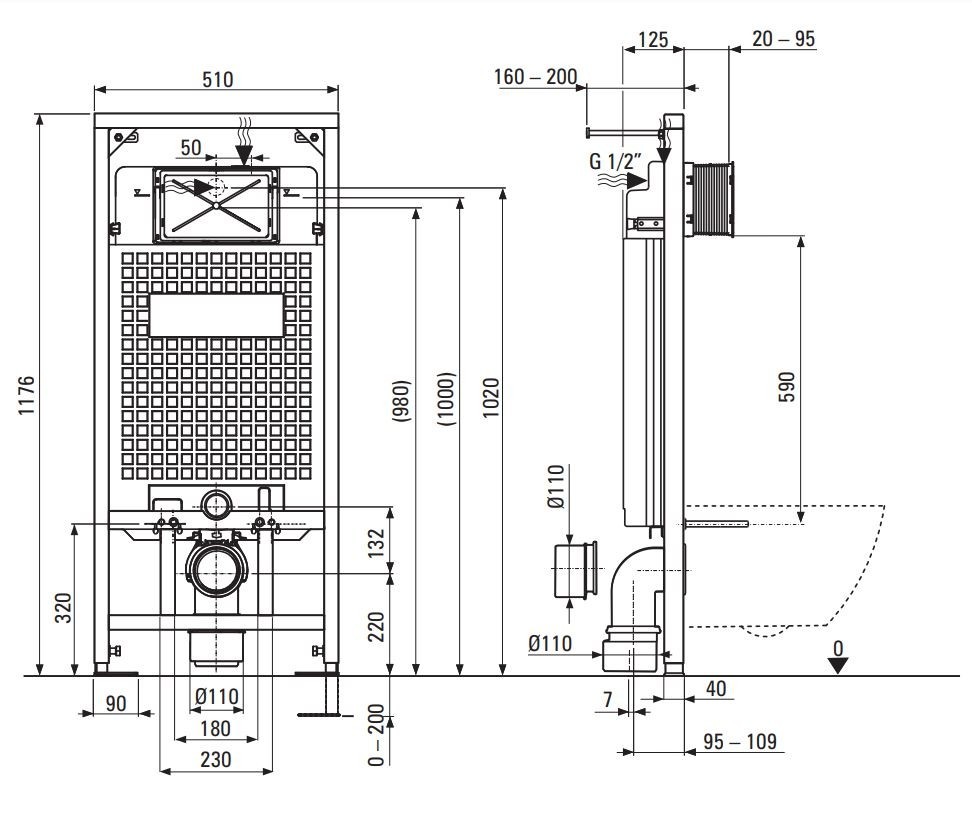 Podomietkový rám je určený na zavesenie WC mís. Je vybavený systémom dvojitého splachovania a dodatočným zvukotesným tesnením. Celok je stabilizovaný odolným oceľovým rámom.