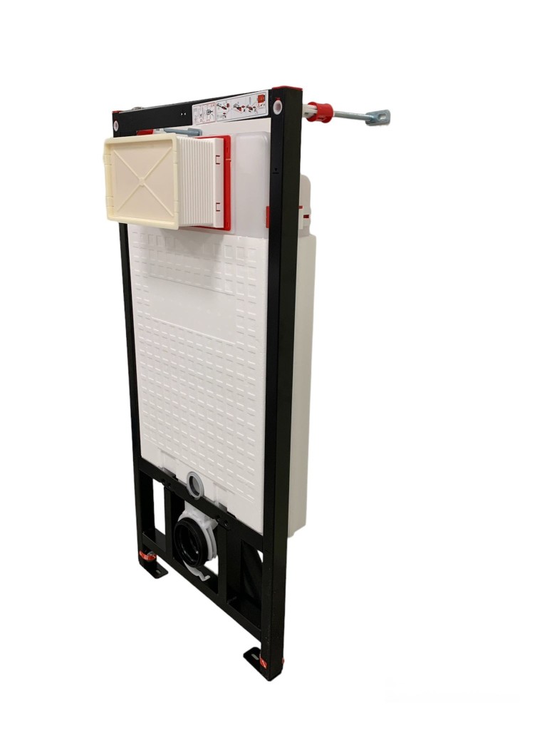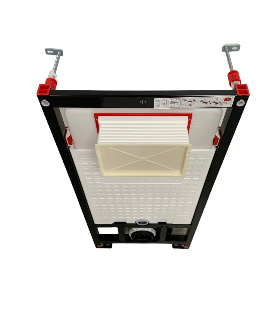Podomietkový rám je určený na zavesenie WC mís. Je vybavený systémom dvojitého splachovania a dodatočným zvukotesným tesnením. Celok je stabilizovaný odolným oceľovým rámom.