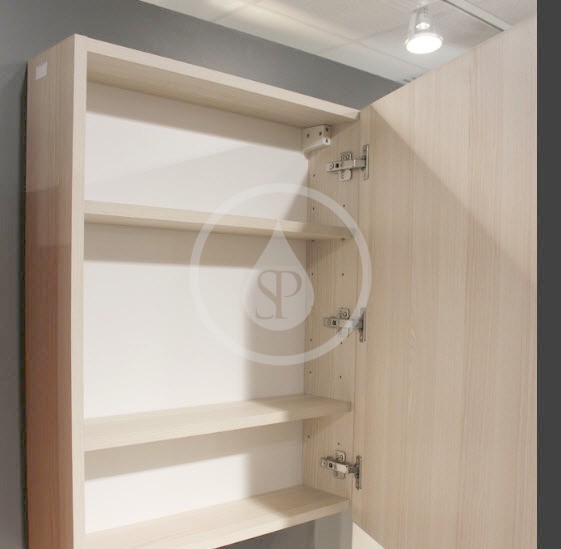 Zrkadlové skrinky Deep by JIKA sú vybavené dvoma vnútornými poličkami. Je možné ich doplniť zásuvkou a vypínačom. Zrkadlové skrinky Deep by JIKA sú pravoľavej. Vnútorné police sú z rovnakého materiálu ako korpus.