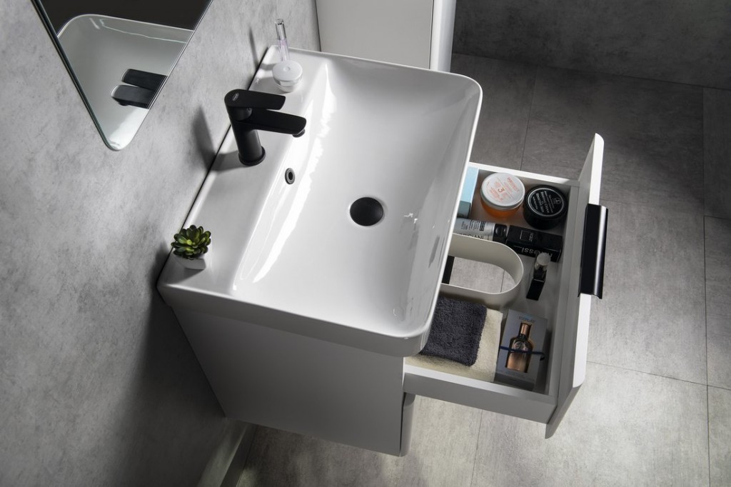 Nábytok je vybavený pojazdy zásuviek s pomalým dojazdom a systémom automatického dovretí zásuviek. Už žiadne hlučné zatváranie.