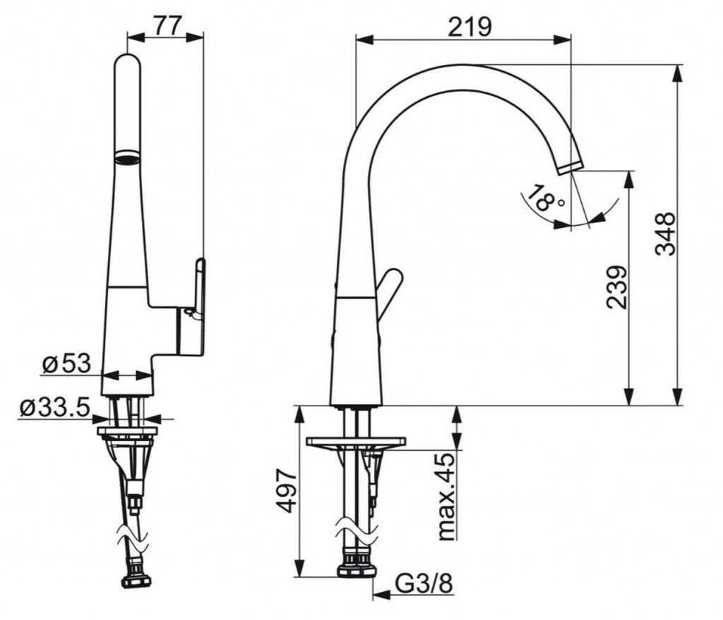 - dĺžka výtoku 219 mm