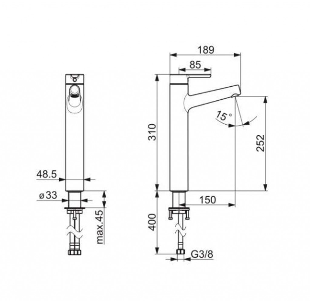 - dĺžka výtoku: 150 mm