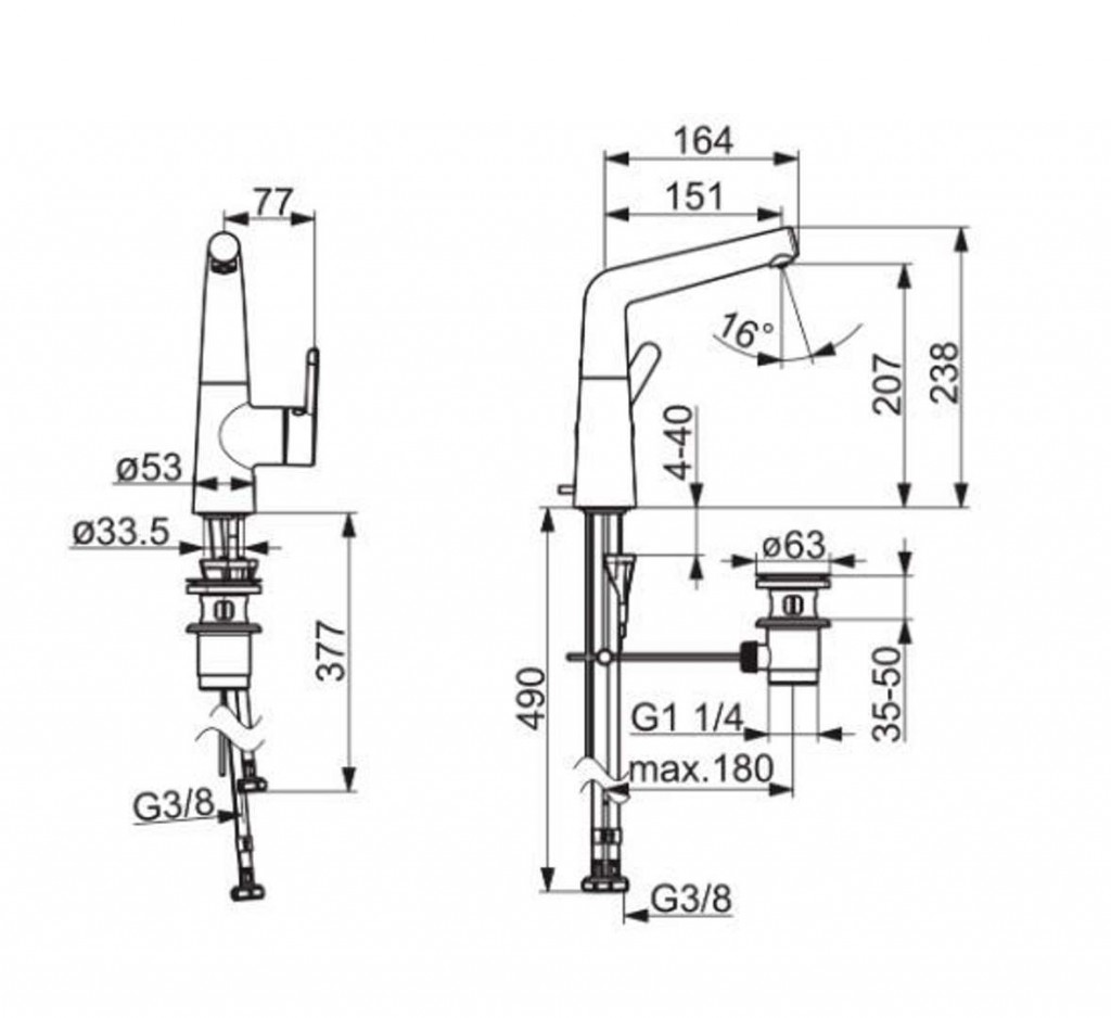 - výtok otočný o 120 °, s vyberateľným dorazom