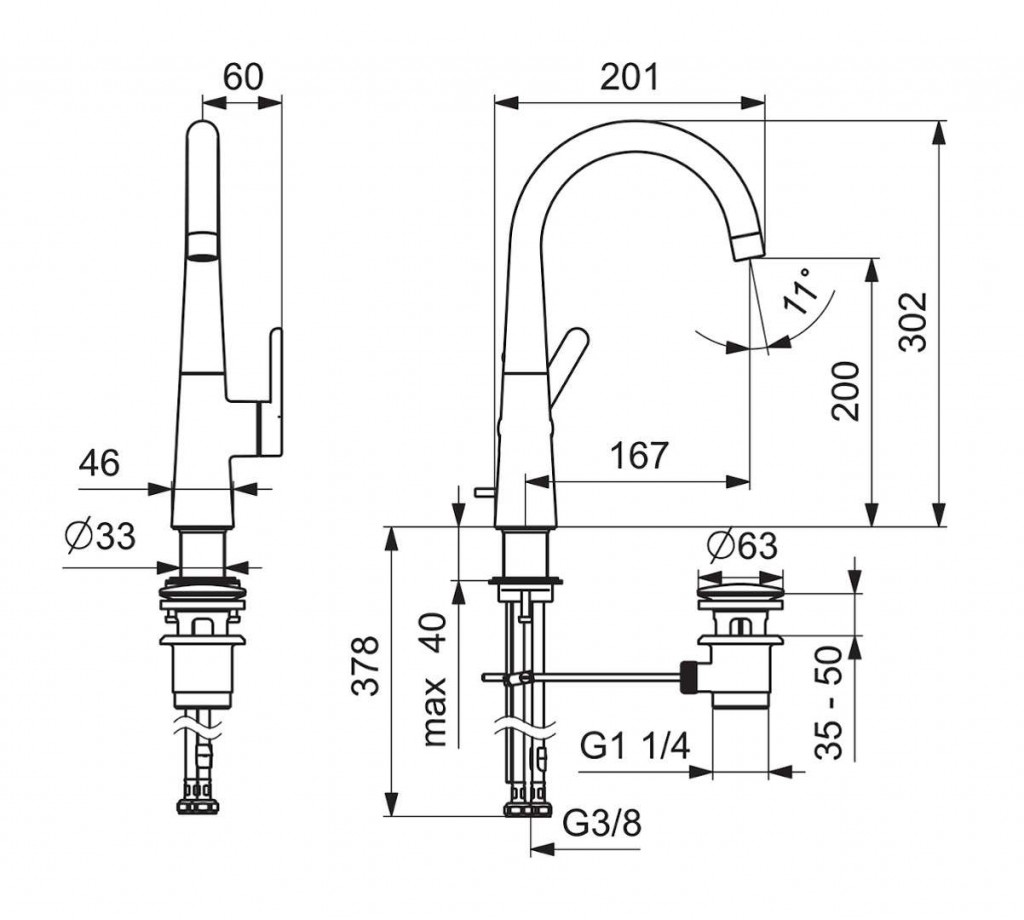 - dĺžka výtoku: 167 mm