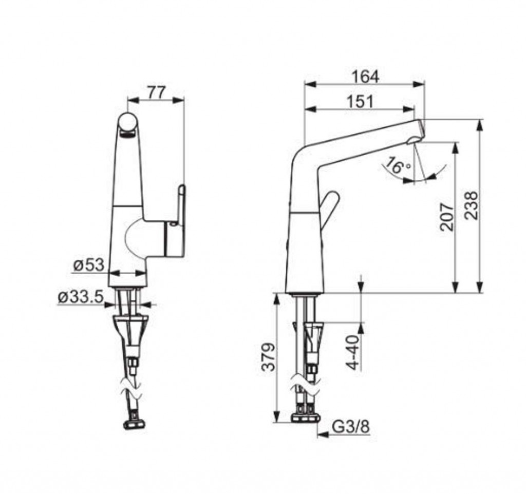 - výtok otočný o 120 °, s vyberateľným dorazom