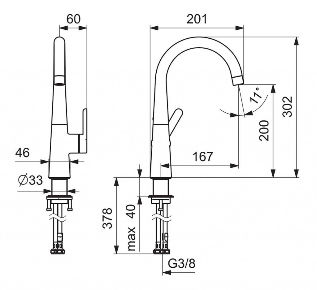 - pripojenie: flexibilné hadice G 3/8, DN15