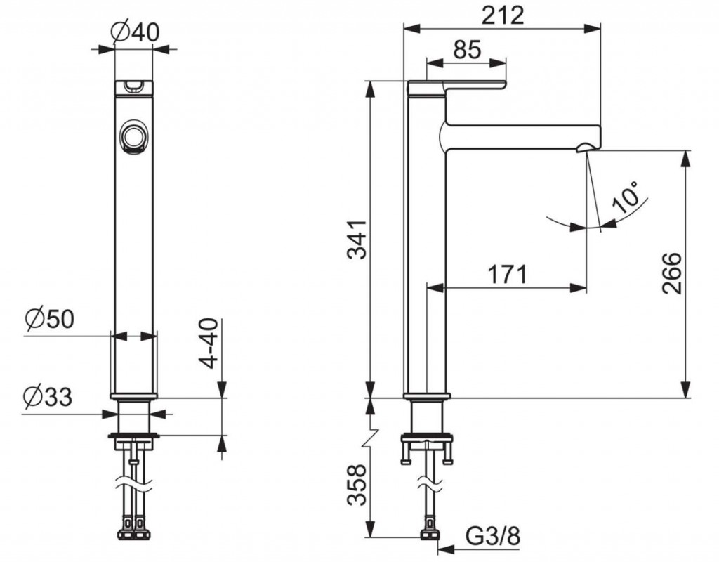 • pripojenie: flexibilné hadice G 3/8, DN15