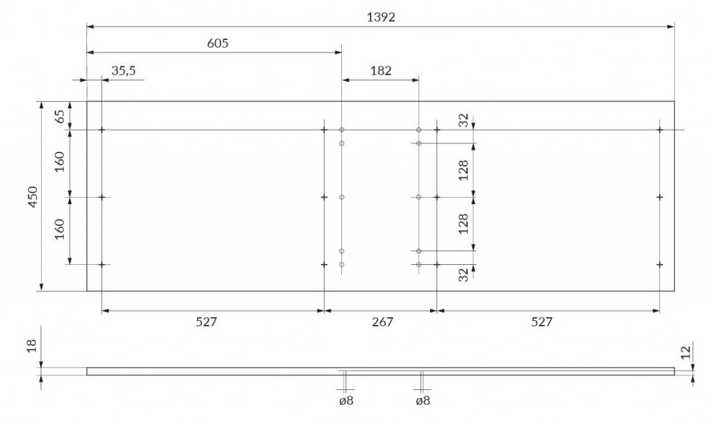 Drevotriesková doska stola v teplom dubovom odtieni, určená pre kombináciu s podpultovými skrinkami MODUO.