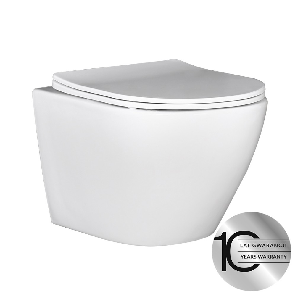 Desna je závesná toaleta s rozstupom otvorov 18 cm a bez viditeľných montážnych prvkov po stranách. Dizajn bez okraja toalety výrazne uľahčuje čistenie. Ďalšou výhodou je jej nadčasový vzhľad. Biela jednotka sa vyznačuje zaujímavo navrhnutými tvarmi, vďaka čomu je perfektným doplnkom každej modernej kúpeľne. Sedátko toalety je vybavené odolnými pántami s mechanizmom tlmeného dovierania a rýchloupínacím systémom. Tento model je vyrobený z extrémne odolného plastu - Duroplastu odolného proti poškriabaniu a zmene farby. Táto konštrukcia pántov eliminuje hlasný hluk pri zatváraní veka a zabraňuje poškodeniu spôsobenému silným nárazom na okraj toalety. Závesný model má pevnú konštrukciu a tieto vlastnosti zvýšia komfort vašej kúpeľne.