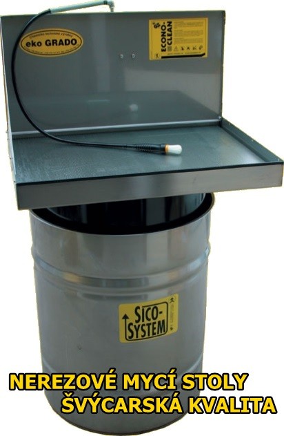 Popis: Stacionárny nerezový umývací stôl s veľkou umývacou plochou, na čistenie a odmastenie väčších dielov. Na umývacie stoly sa používajú ekologické náplne, ktoré po opotrebovaní umývacie schopnosti odoberá firma späť.