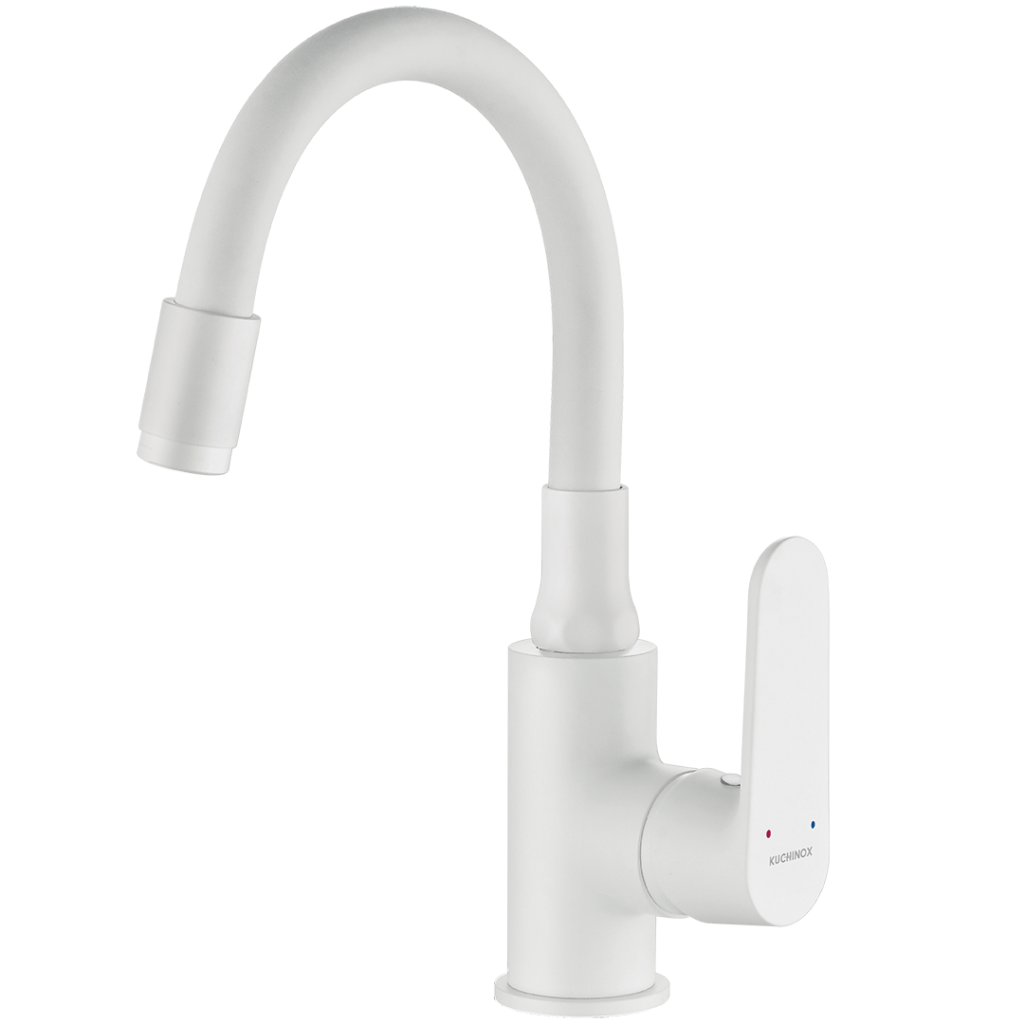 Dima je vkusná a minimalistická kolekcia Kuchinox, ktorá ponúka širokú škálu modelov kuchynských a kúpeľňových batérií. K dispozícii v elegantnej čiernej, bielej a chrómovej farbe, vám umožní navrhnúť celú kúpeľňu v jednotnom štýle. Dima je funkčným riešením ako pre malé kúpeľňové priestory, tak aj pre veľké rodinné kúpeľne. Kolekcia obsahuje dve drezové batérie, tri modely umývadlových batérií: tradičnú nástennú batériu s pohyblivým výtokom v tvare U a bočnou pákou vpravo a klasickú nástennú batériu. Máme aj modely do kúpeľne, vrátane nástennej sprchovej batérie a dvoch modelov vaňovej batérie. Prvá je tradičná nástenná batéria a trojotvorová batéria, ktorá je (rovnako ako jej nástenný náprotivok) vybavená keramickým prepínačom funkcií. Každý prvok bol navrhnutý tak, aby optimalizoval dostupný priestor. Jemne zaoblené tvary sú elegantné a nadčasové. Do miestnosti vnášajú poriadok a harmóniu a tiež sa veľmi ľahko udržujú v čistote.
