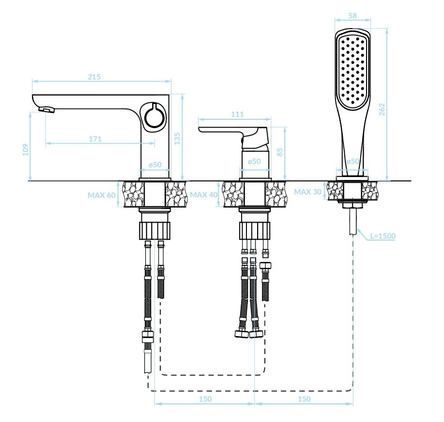 Batéria je navrhnutá pre inštaláciu priamo na okraj vane alebo na špeciálnu plošinu . Skrytá sprchová hadica prispieva k čistému a nerušenému vzhľadu kúpeľne a zároveň nijako neprekáža pri kúpaní.