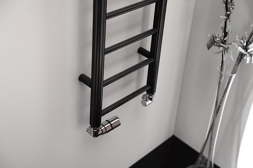 Kúrenie s jednobodovým pripojenímElegantný kúpeľňový radiátor zo správne kombinovaných priemerov vodorovných a zvislých rúrok. Krása v jednoduchosti skĺbená s atraktívnym farebným prevedením.