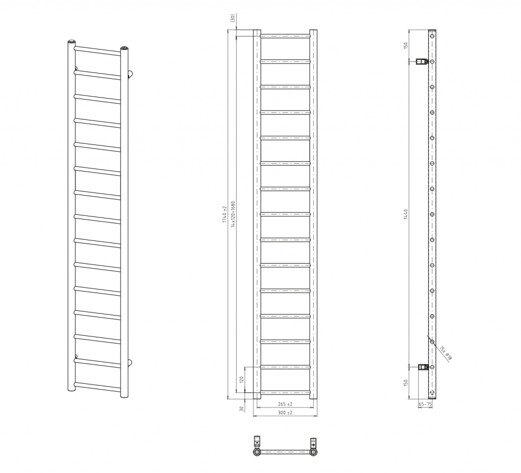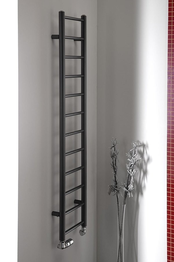 Kúrenie s jednobodovým pripojenímElegantný kúpeľňový radiátor zo správne kombinovaných priemerov vodorovných a zvislých rúrok. Krása v jednoduchosti skĺbená s atraktívnym farebným prevedením.