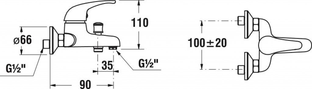 Vaňová páková nástenná batéria bez sprchového príslušenstva