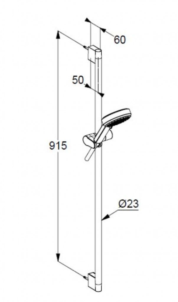 - rozteč uchytenia sprchovej tyče: 915 mm