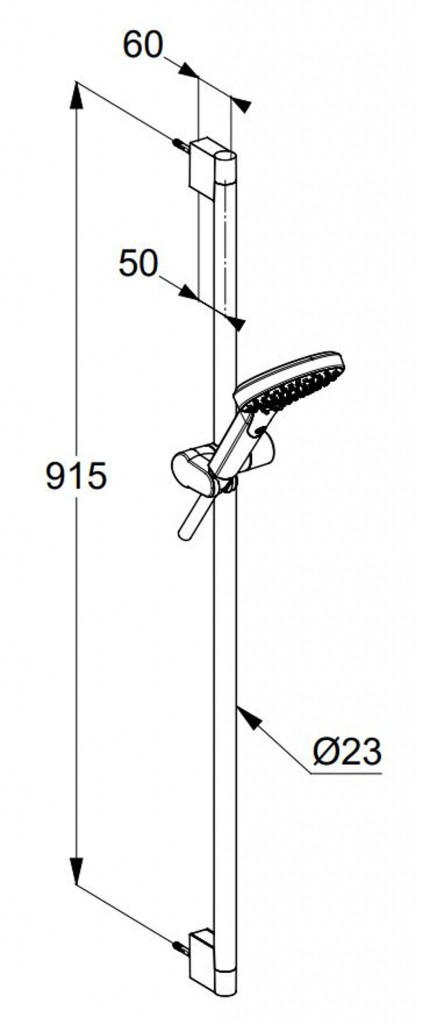 - rozteč uchytenia sprchovej tyče: 915 mm
