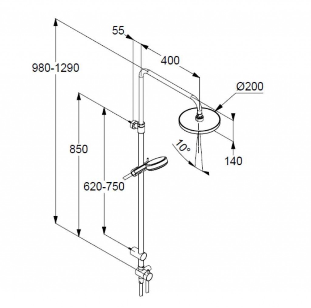 - sprchová tyč s výškovo nastaviteľným ramenom