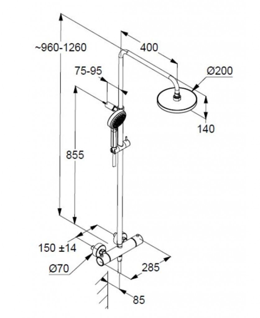 - sprchová tyč s výškovo nastaviteľným ramenom