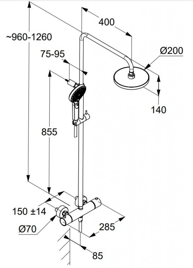 - sprchová tyč s výškovo nastaviteľným ramenom