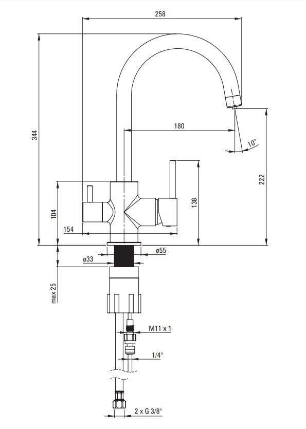Hlavnou prednosťou je integrovaná možnosť pripojenia k vodnému filtru – vďaka priloženej 1/4" rýchlospojke je možné batériu ľahko prepojiť s poddrezovým filtračným systémom. Toto riešenie nielen zvyšuje komfort, ale tiež podporuje udržateľný životný štýl tým, že obmedzuje potrebu balenej vody a znižuje množstvo plastového odpadu.