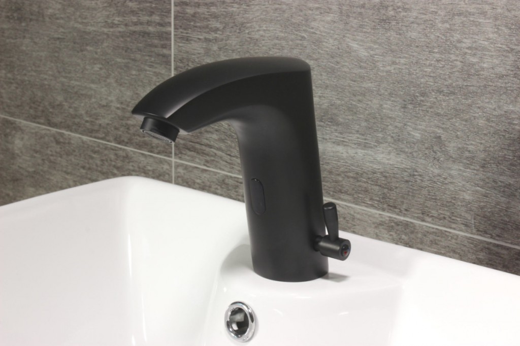 Automatická vodovodné batérie AutoFlow 02 sa vyznačuje jedinečným dizajnom s ostro rezanými rysmi.