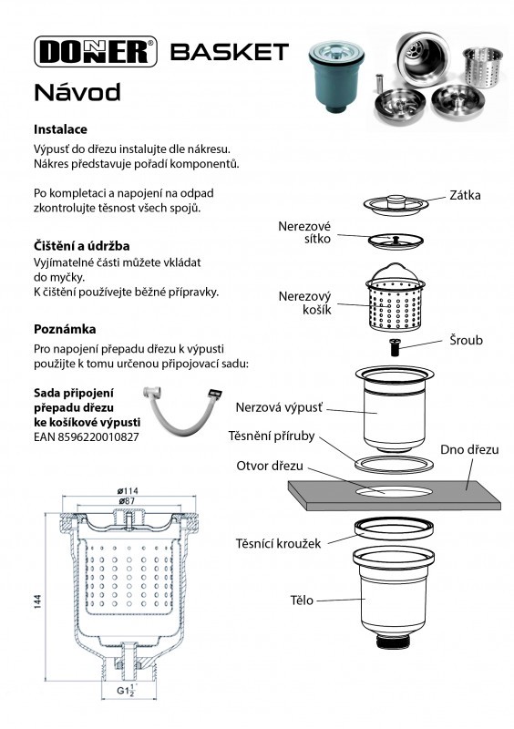 S drezovým košíkom môžete lúpať zeleninu a ovocie rovno v dreze, navyše eliminujete problémy s upchatým sifónom. Ideálne do domácností, menších gastro prevádzok, a pre každého, kto nechce, či si nemôže z rôznych dôvodov zaobstarať drvič odpadkov. Set sa skladá z výpuste, hlbokého drezového košíka, sitka a nerezové zátky.