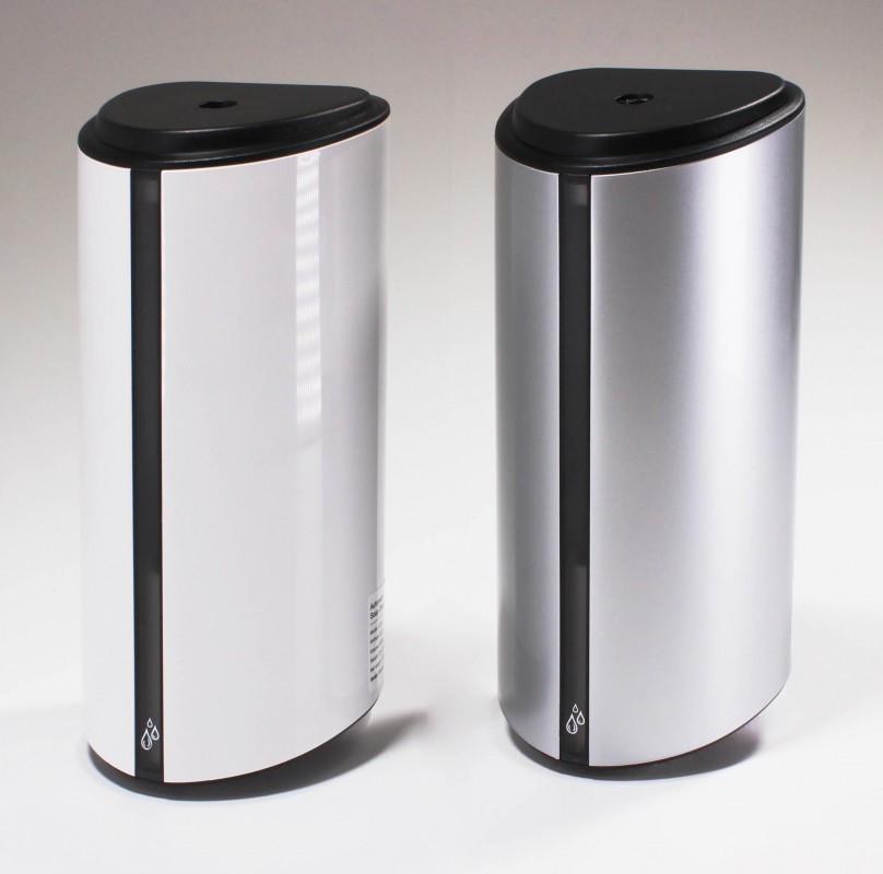Automatický dávkovač DROP Gél je dostupný v dvoch farebných prevedeniach, bielej a striebornej farbe. Telo prístroja je vyrobené z odolného ABS plastu.