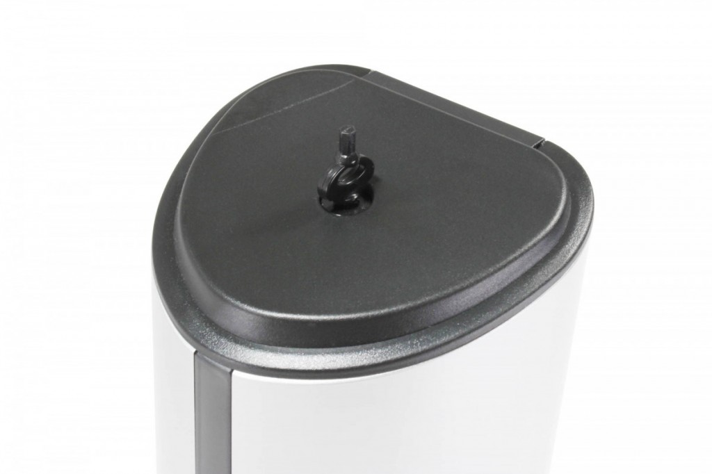 Dávkovač DROP Gél je vybavený nádobkou na mydlo či dezinfekciu s objemom 850 ml. Gélová náplň sa do dávkovača dolieva širokým hrdlom. Môžete použiť gélové mydlo či dezinfekciu od ľubovoľného výrobcu. Proti neautorizovanej manipulácii je dávkovač zaistený servisným kľúčom.
