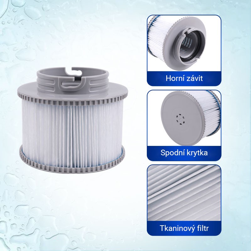 Filtračná kartuša Donner MSPA určená na filtráciu vody vo vírivkách a bazénoch. Filter pomáha odstraňovať nečistoty, prach a inú špinu. Zaistí teda priezračne čistú vodu. Filtre odporúčame pravidelne čistiť a meniť. Toto dvoj balenie je vhodné pre všetky modely nafukovacích víriviek radu MSPA. Nasadzujú sa jednoduchým pootočením priamo na filtračnú prírubu vo vnútri vírivky.