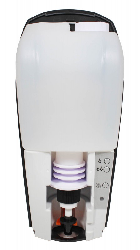 Voliteľný výdaj menšieho alebo väčšieho množstvaDonner MIST Gél môže po priložení ruky vydať jednu, alebo dve dávky gélové dezinfekcie či mydla. Veľkosť jednej dávky je 0,4 ml. Výdaj dvoch dávok je vhodný predovšetkým pre preškolený personál, ktorý si môže týmto spôsobom vydezinfikovať obe ruky. Zásobným v bezdotykovom dávkovači o objedmu 1000 ml vystačí na 2500 jednotlivých dávok.