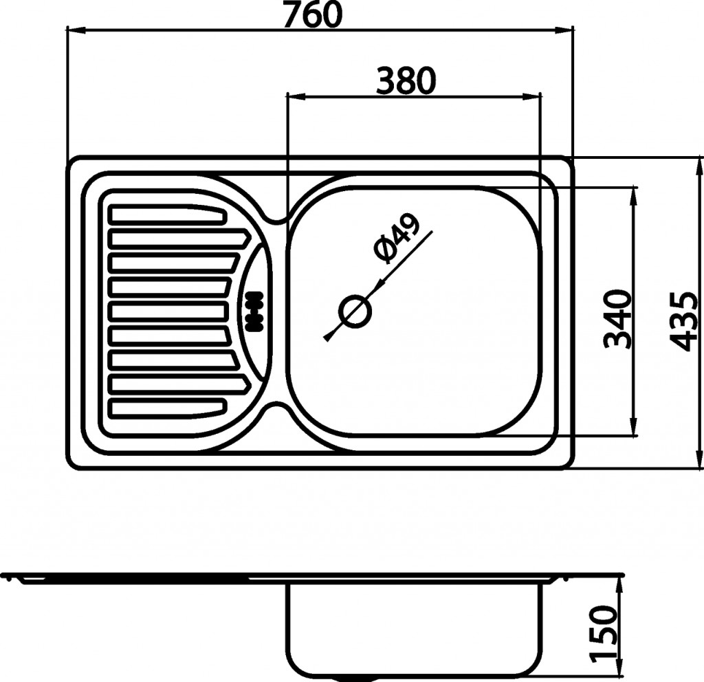 Vonkajší rozmer 76x43,5 cm a hĺbka 15 cm. Kuchynský drez s odkvapovou plochou a prepadom. Súčasťou balenia je sifón NSP 49. Predĺžená záruka 5 rokov.(GT)