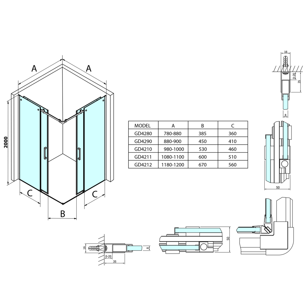 - Pre vyššiu stabilitu odporúčame inštalovať zástenu so vzperou GDV300