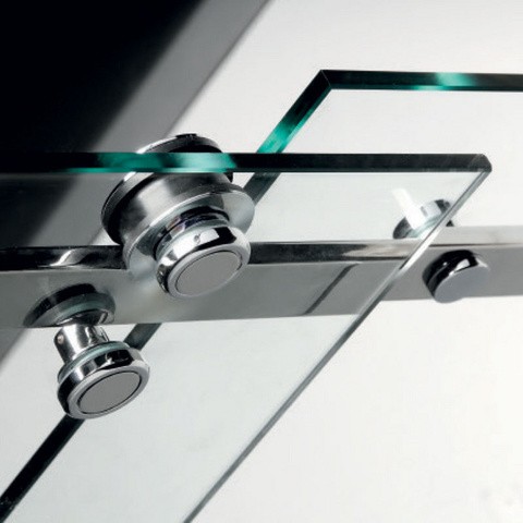 - Sklo dverí je voľne zavesené bez spodného vodiaceho profilu.