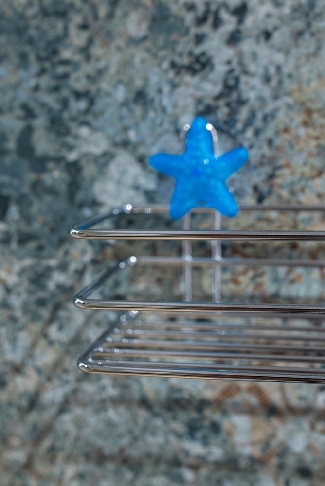 Nástenná polica upevnená na prísavkách. Vďaka prísavnému upevneniu je jeho montáž a demontáž extrémne jednoduchá.