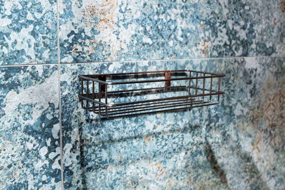 Kúpeľňová polička je vyrobená z oceľovej lakovanej medi s dlhoročným efektom. hmoždiniek, ktoré sú súčasťou sady.