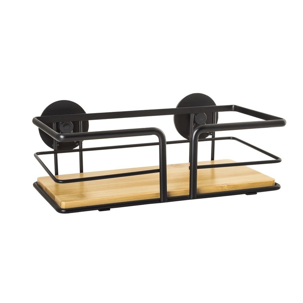 Jednoduchá kúpeľňová polička z ocele lakovanej sýto čiernou farbou je štýlovým a funkčným riešením pre rôzne interiéry. Jeho minimalistický dizajn sa hodí do moderných aranžmánov a vďaka jednoduchému tvaru ho možno namontovať na akúkoľvek stenu. Vnútorná polica z prírodného bambusového dreva dodáva eleganciu a teplo a poskytuje atraktívny kontrast k čiernej oceli. Polica sa montuje pomocou vysokopevnostnej samolepiacej pásky 3M, ktorá zaisťuje jednoduchú inštaláciu a pevné držanie. Polička má maximálnu nosnosť 4 kg, vďaka čomu je ideálna na uloženie rôznych kúpeľňových doplnkov.