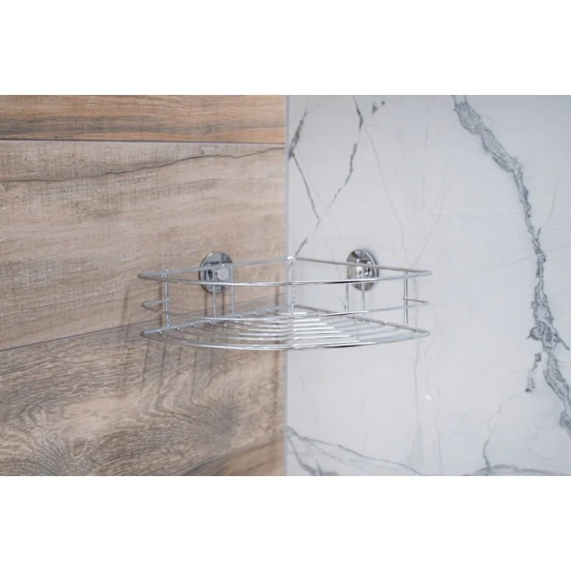 Praktická a elegantná štvrťkruhová polička na nalepenie. Samolepiace kúpeľňové doplnky sú ideálnym riešením, ak nechcete vŕtať do obkladov. Veľmi kvalitná lepiaca páska 3M priľne k rôznym povrchom a umožňuje jednoduché odstránenie doplnkov bez zanechania stôp či poškodenia. Pochrómovaná oceľ a povrchová úprava pochrómovaním zaisťujú odolnosť voči korózii a vlhkosti.