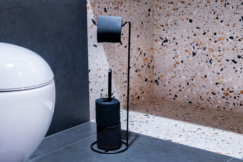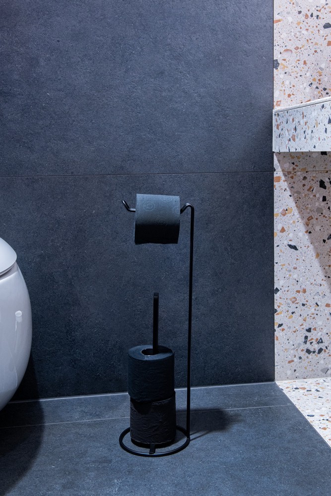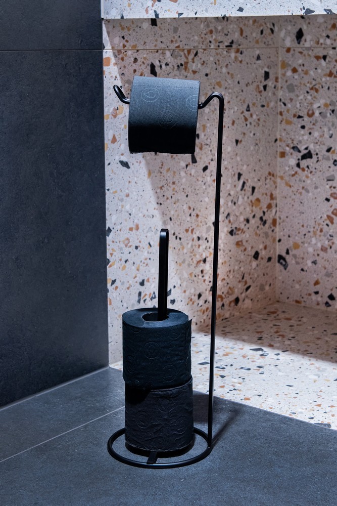 Drôtený držiak a zásobník toaletného papiera v čiernej farbe , s čistým elegantným dizajnom, ktorá sa hodí do každej modernej kúpeľne aj WC . Praktický pomocník na usporiadanie vybavenia toalety . Prvotriedna oceľ a kvalitná povrchová úprava zaisťujú vysokú odolnosť voči korózii a vlhkosti .